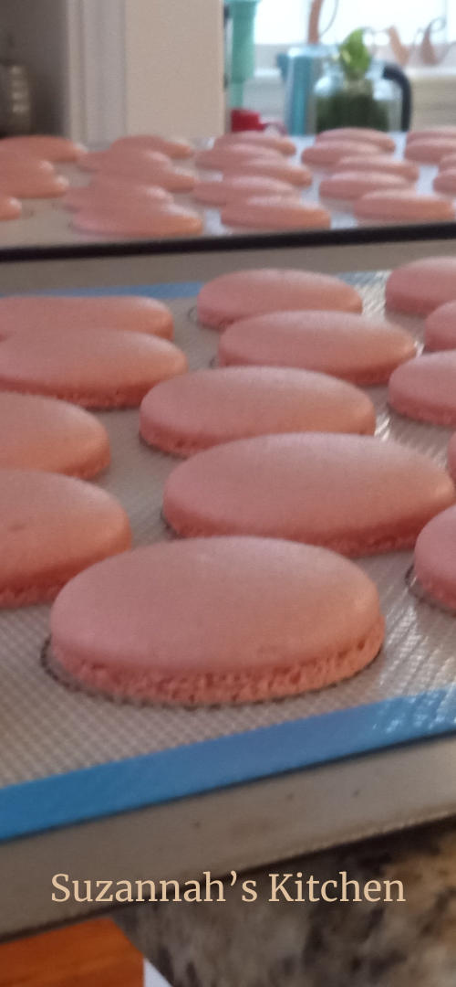 Note: This is what works for my oven. You may do ok at 325F the whole time. Each oven is different and the nuances matter with macarons.