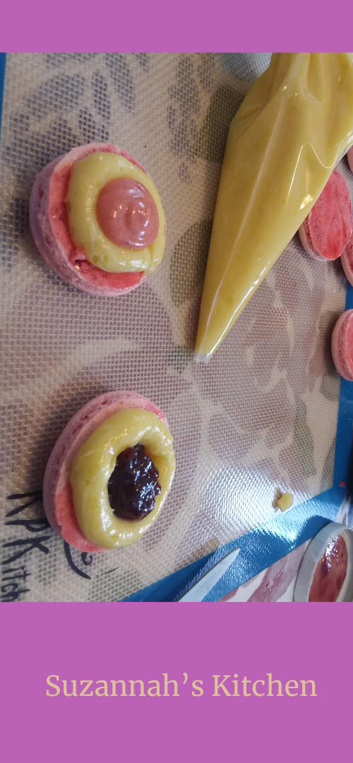 Festive berry macarons are delightful for birthdays and anniversaries. Make a berry curd or preserve. These are also a favorite of most people.