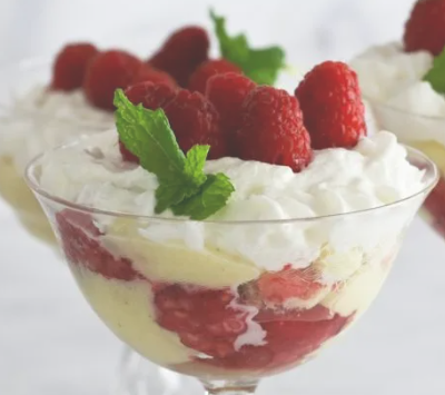 Garnish with fresh berries, white chocolate, or mint leaves.