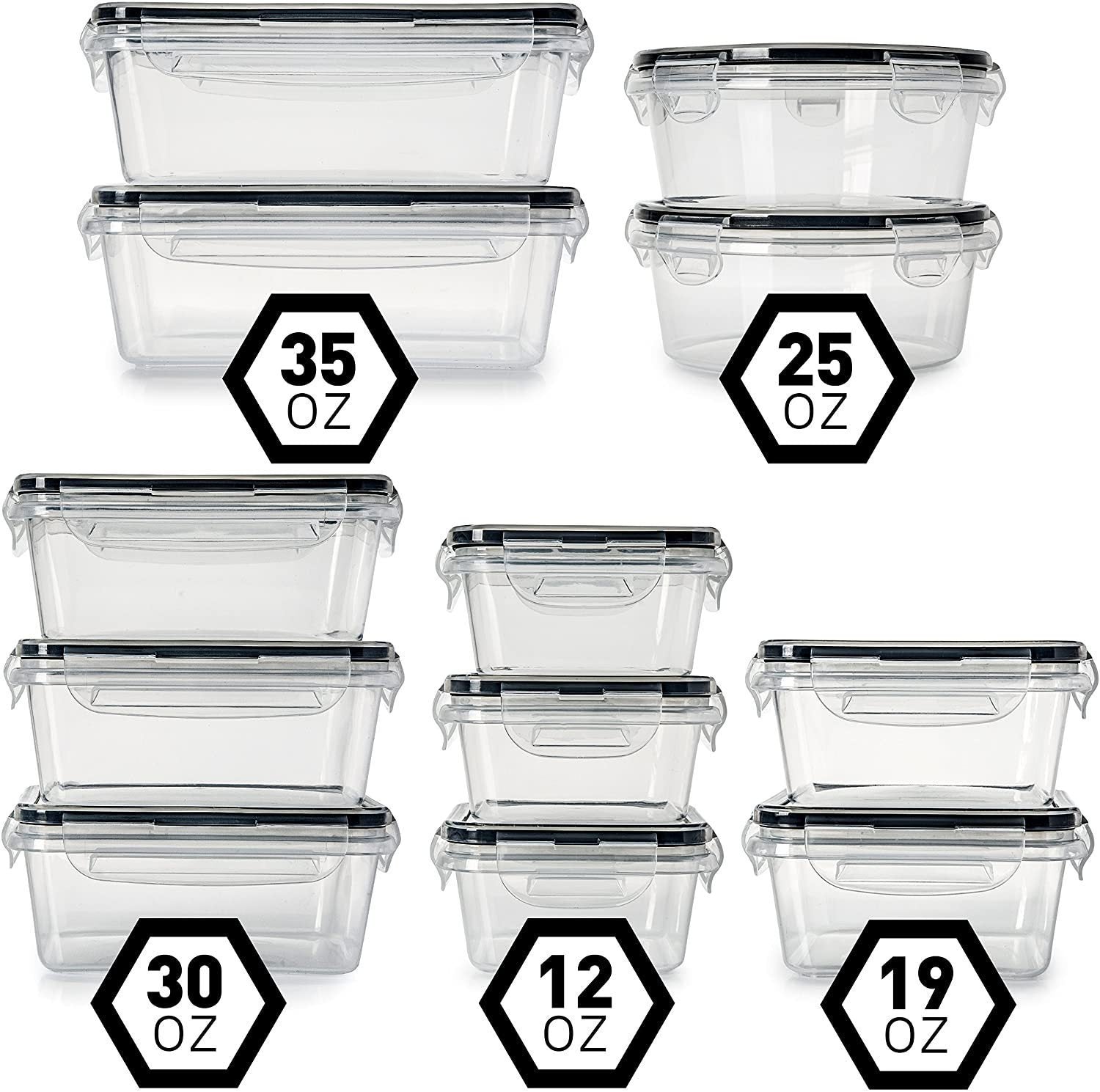 One 12PC Set: Plastic Food Storage Containers with Snap-On Lids