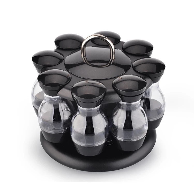 Maximize your kitchen space with our rotating spice rack. Choose from our 1-tier or 2-tier models, both including stylish jars with attached lids that rotate for easy dispensing. Keep your spices fresh and organized with our airtight, spill-proof design. Crafted from durable ABS AS material. Available in 8 or 16-bottle sets.