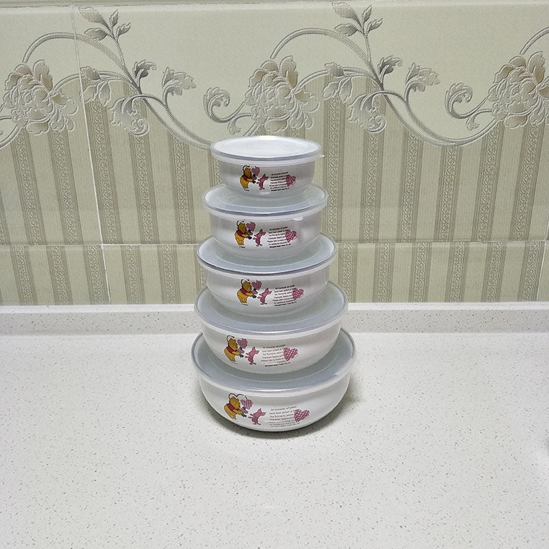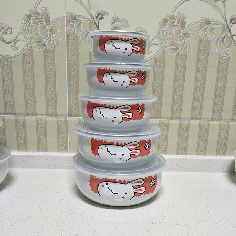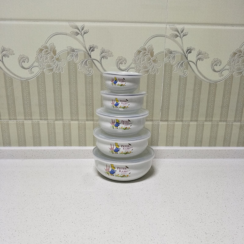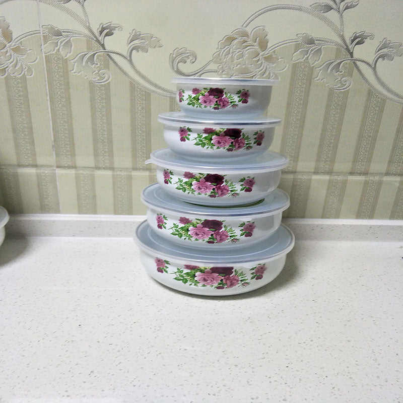5PC Painted Enamel Food Storage Bowls with Airtight Plastic Lids