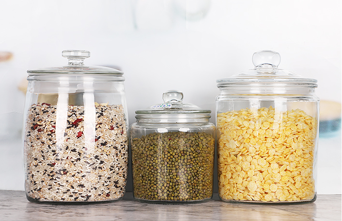 Introducing our round glass airtight canister, perfect for stylish and practical food storage. With a knobbed lid for easy access, these traditional canisters not only display contents but also provide an airtight seal. Ideal for pantry, countertop, and other organizational needs.