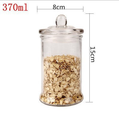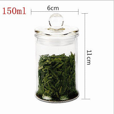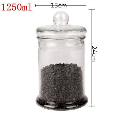 Round, Clear Glass Apothecary jars, round with glass lid and airtight seal.