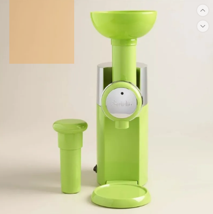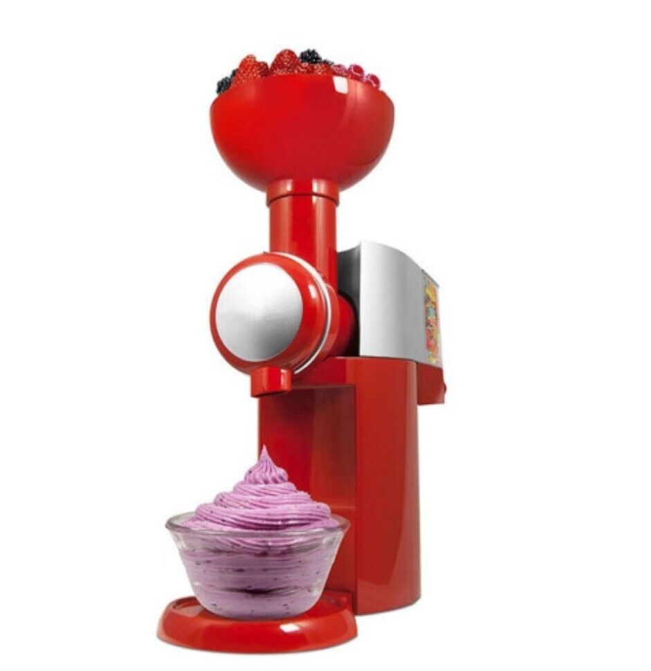 Big Swirlio Frozen Fruit Slushie, Sorbet, Ice Cream Machine processes frozen fruit into a slushie, sorbet, and mix to make fruit yoghurt or ice cream.