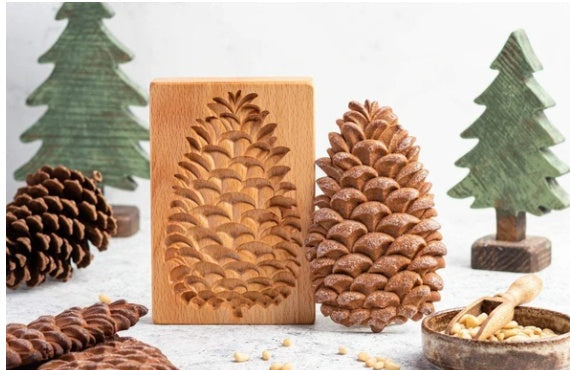 Carved Flower, Pinecone & Rose Wooden Cookie Stamps