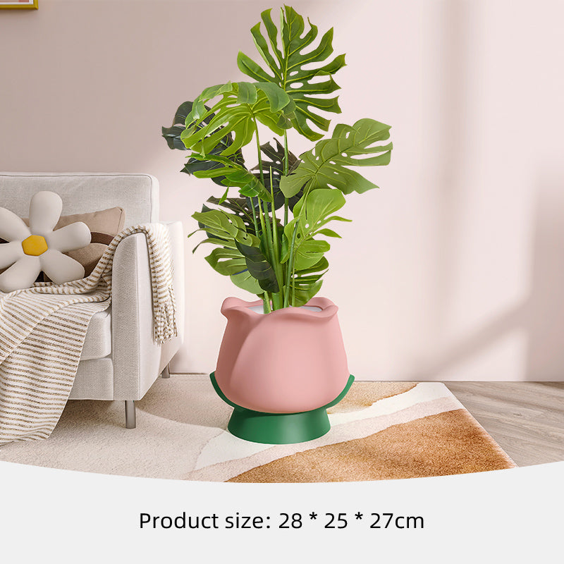 This handcrafted ceramic tulip vase doubles as a planter for live plants. Its unique shape and colorful glaze add a touch of artistry to your decor. Made from durable ceramic, it's perfect for showcasing your favorite flowers or adding a pop of color to any room.