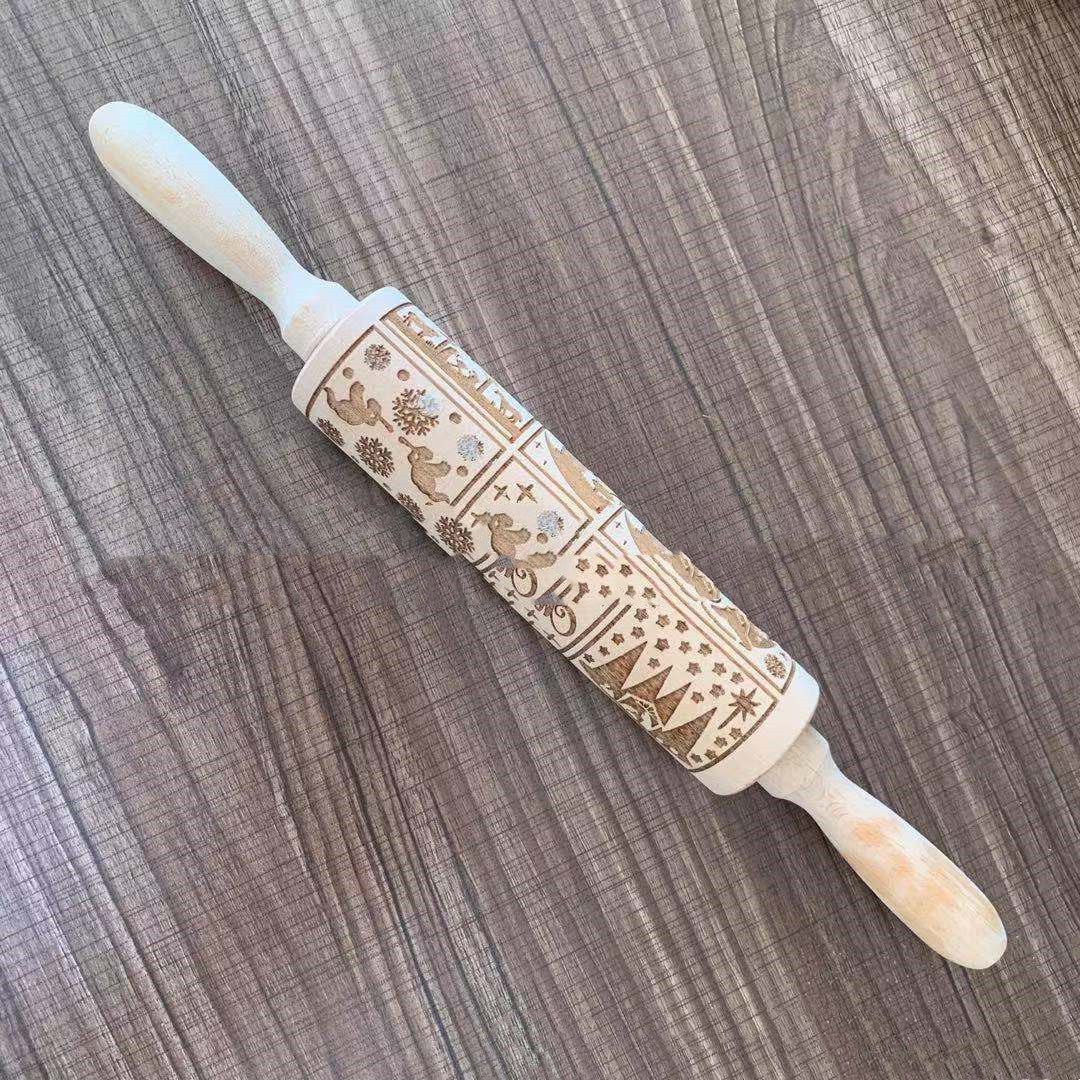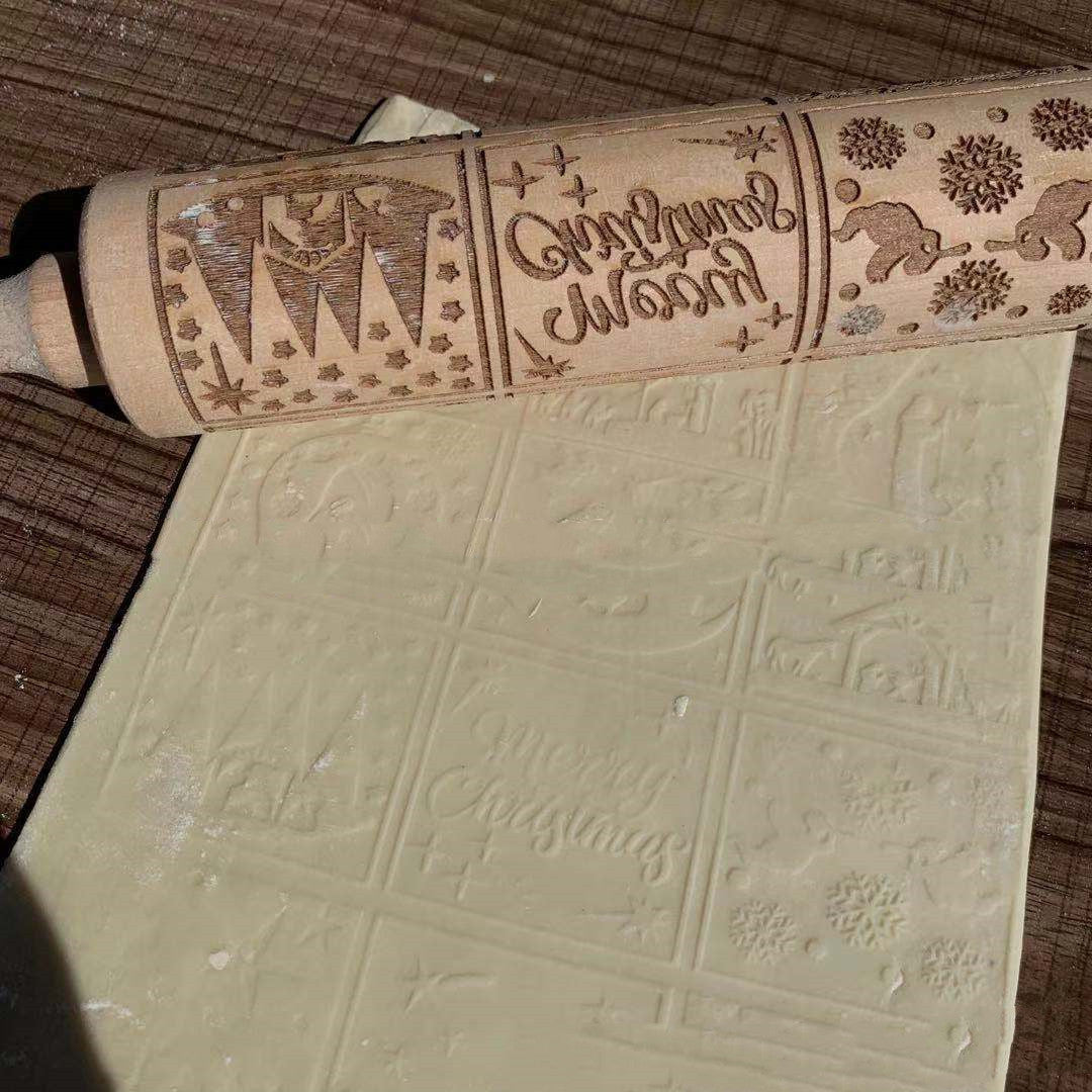 Create festive holiday treats with this Christmas: Holiday Design Squares on Embossing Rolling Pin. No need for multiple cookie molds and cutters, as this one rolling pin has a variety of beautiful Christmas designs engraved on its wooden surface. Perfect for making cookies, crackers, and more!