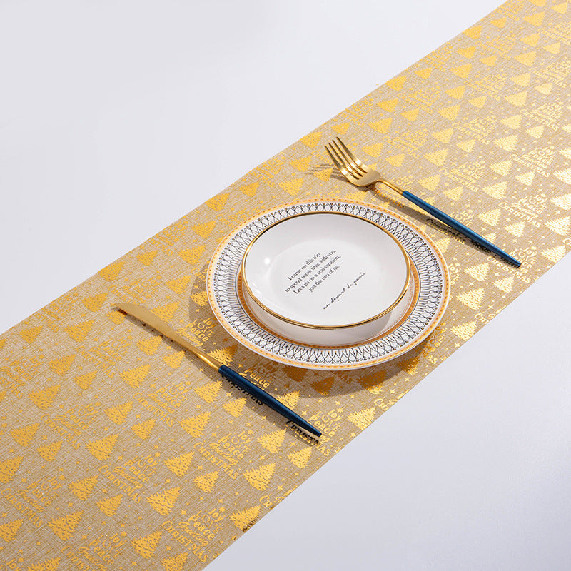 Add a splash of color and joyful holiday fun to your table quickly and easily with a holiday table runner. Our table runners feature festive designs such as Snowmen, Trees, Reindeer, and Golden Christmas Jaccard. Add a pop of color and cheer to your dining experience with ease and style. Make your holiday meals a merry occasion with these joyful table runners.
