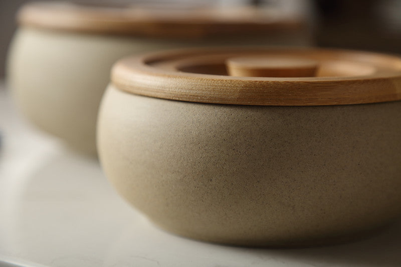 Grain Storage Pot is a simple, short, round pots with lid and you can stack them.