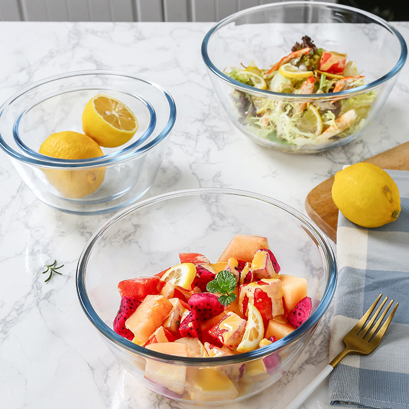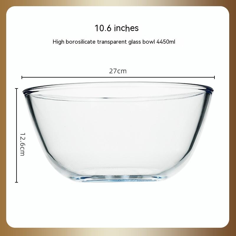 This clear glass bowl is a versatile addition to any kitchen. Use it for mixing, desserts, salads, soups, measuring, prep, mixing, serving, storing. Made of heat-resistant tempered glass, it is microwave safe and comes in various sizes up to 4450ml. The perfect prep bowl for any recipe.
