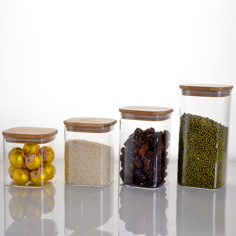 This beautifully clear container is made of durable borosilicate glass. With the decorative bamboo seal with looks great on the kitchen counter, on exposed shelves, or in cupboards or pantry. We have several sizes to choose from.