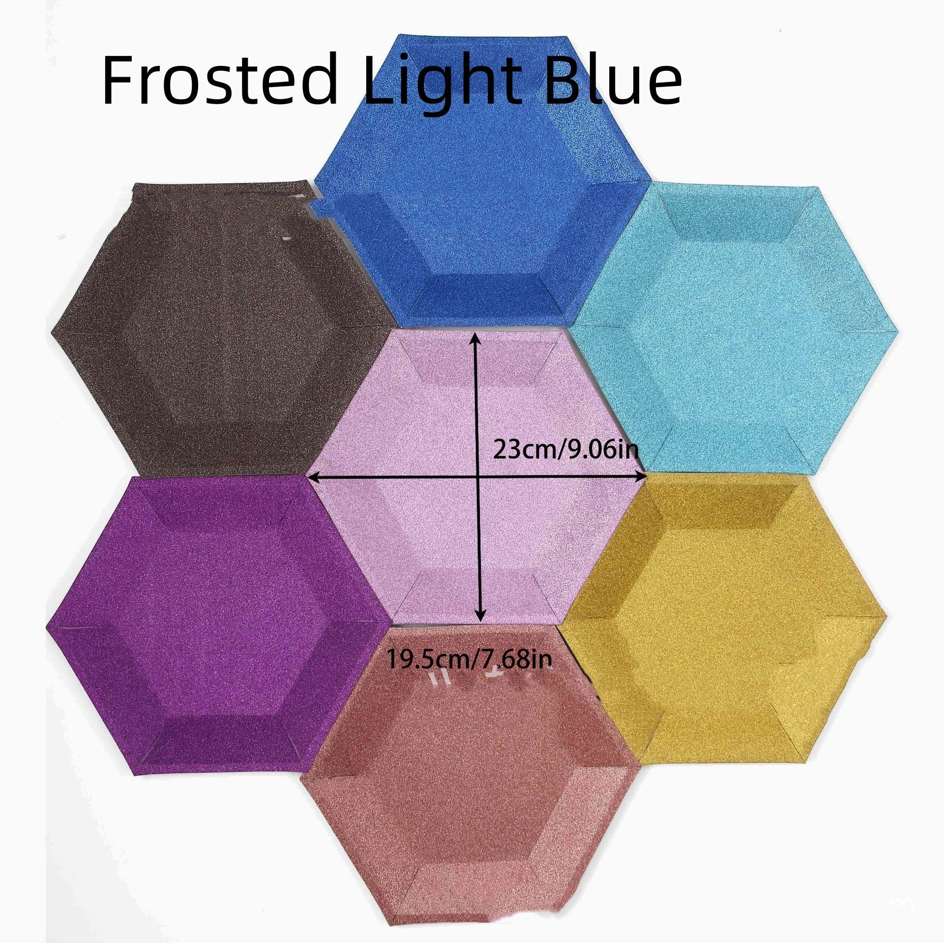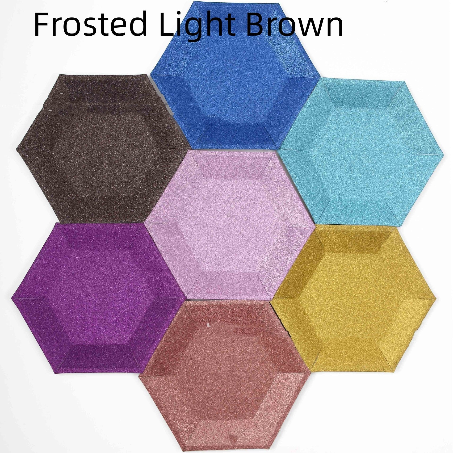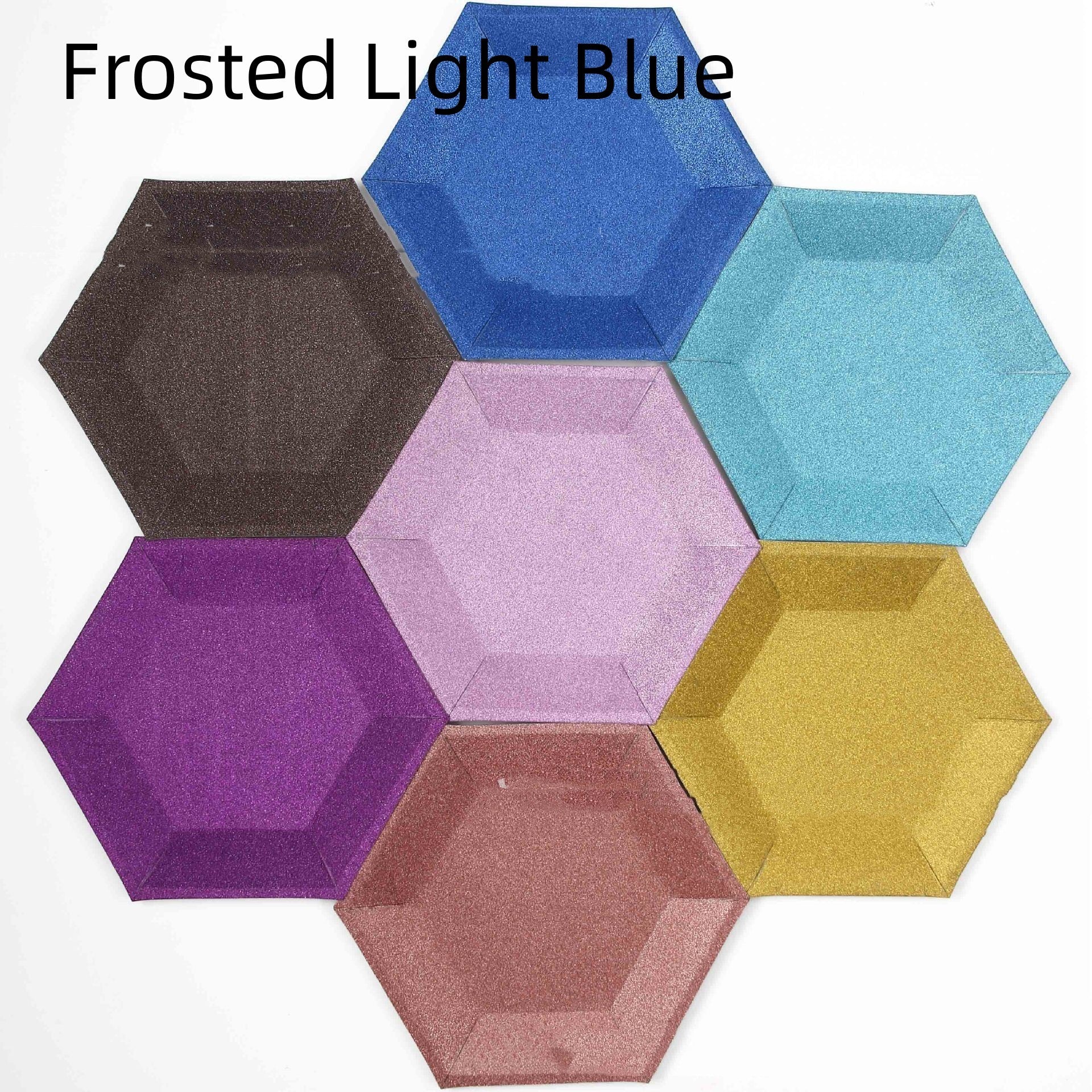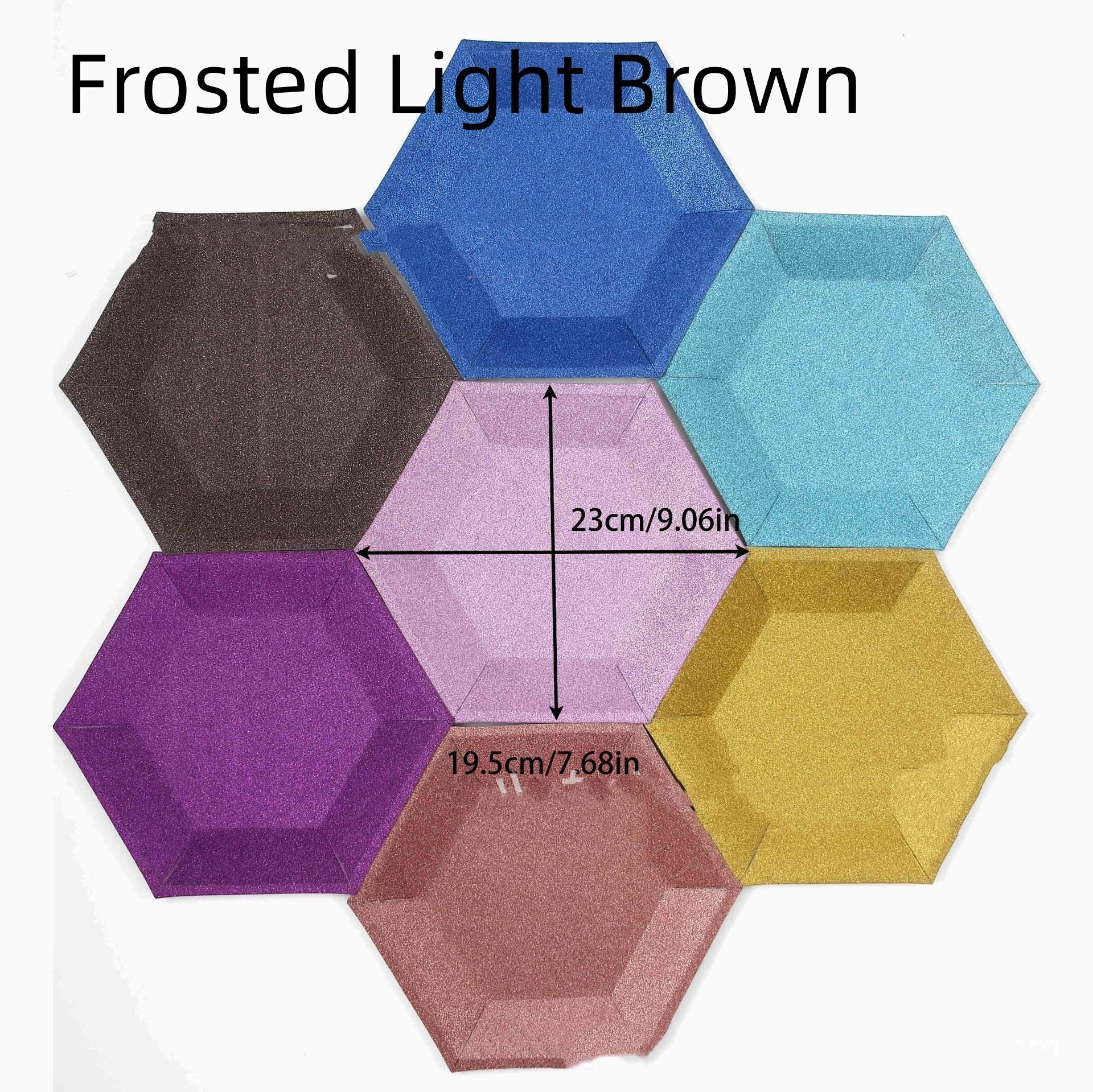 Beautiful Colors. Hexagonal Shape, Use as serving trays or plates. Makes a lovely cake base or base for entremet, mousse, or tiramisu. Color: frosted blue, Frosted Brown, scrub purple, frosted light brown, frosted color changing, frosted light blue, frosted pink 7 trays fir together perfectly to make a geometrical flower of sorts! Very pretty! Use to display desserts, as cake boards, and single servings.