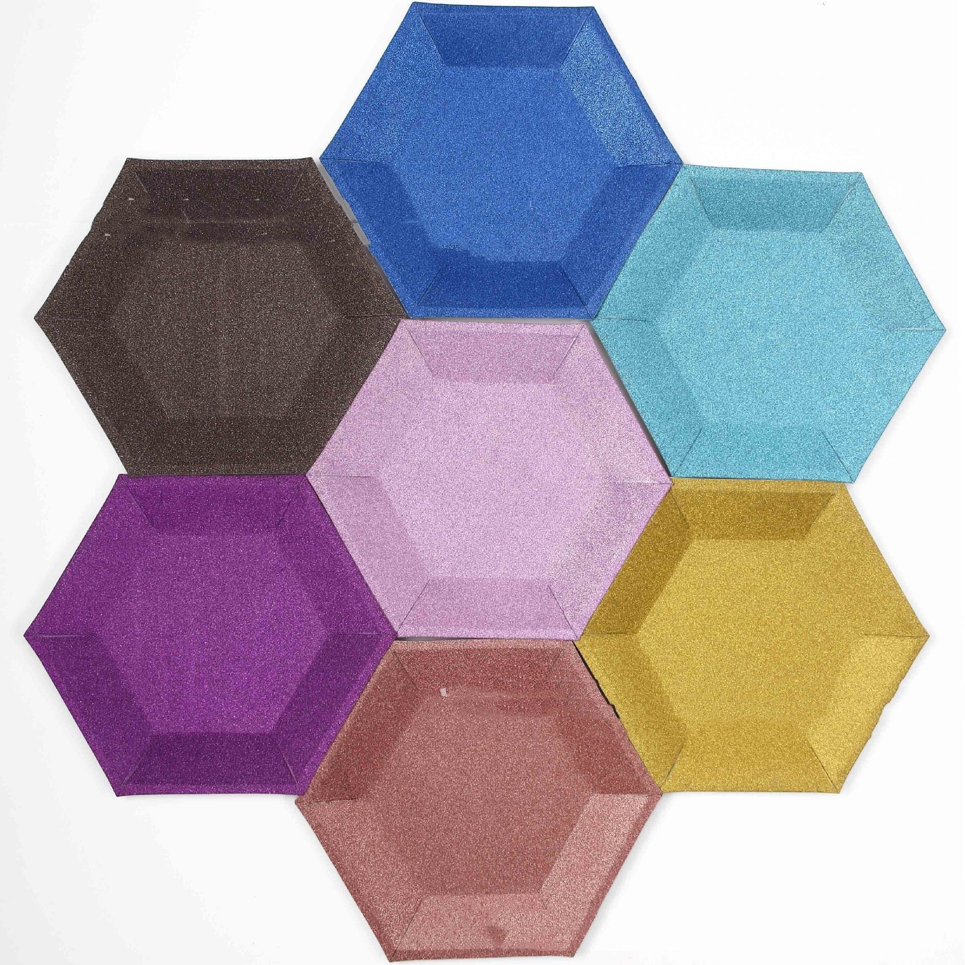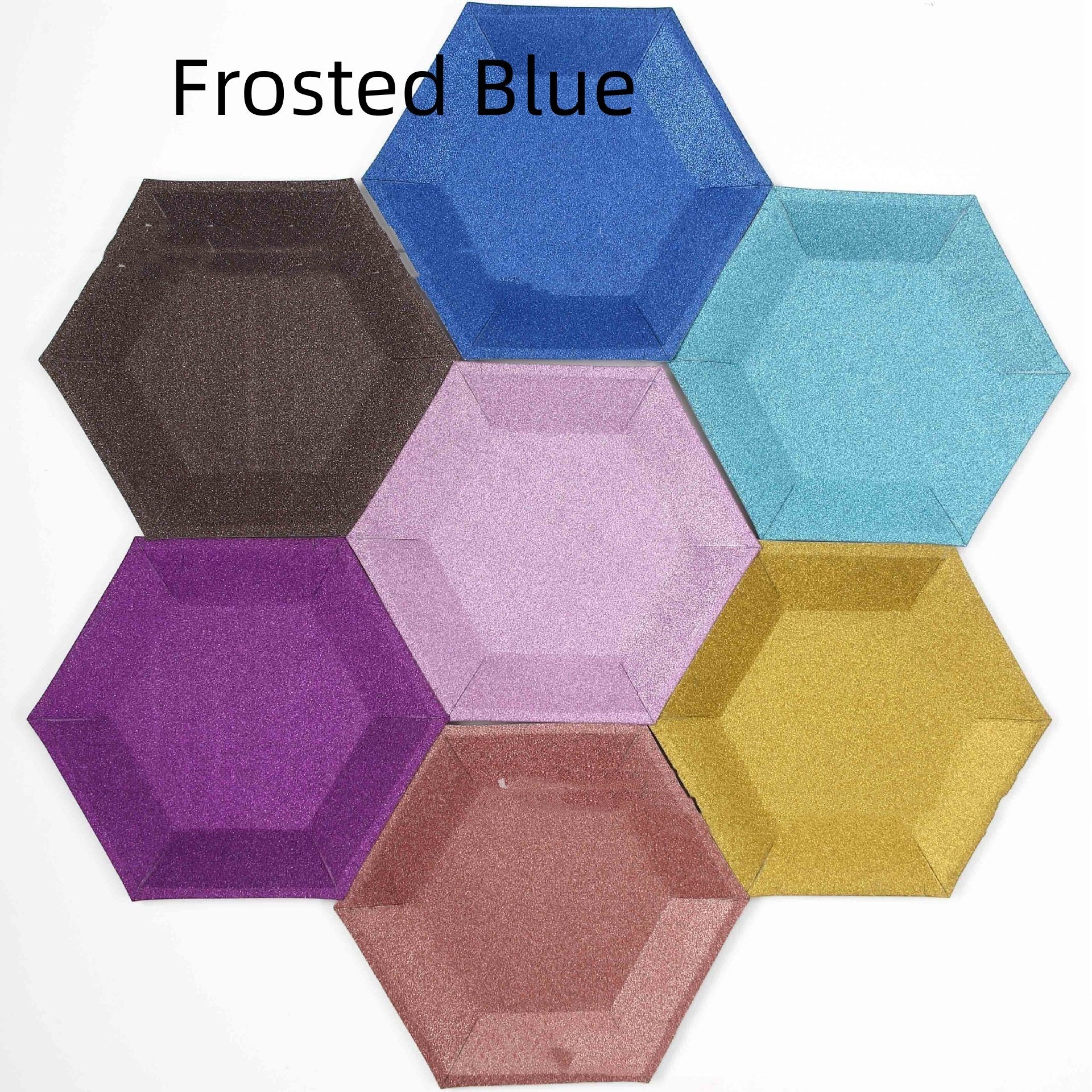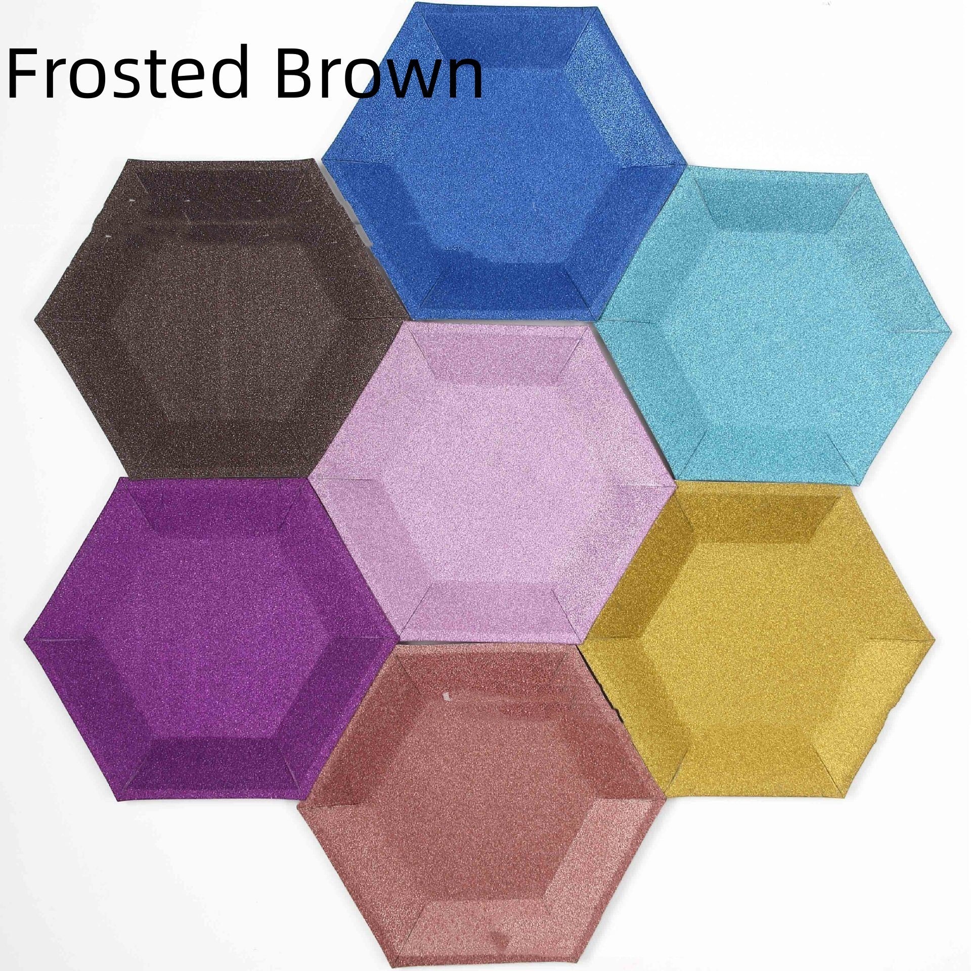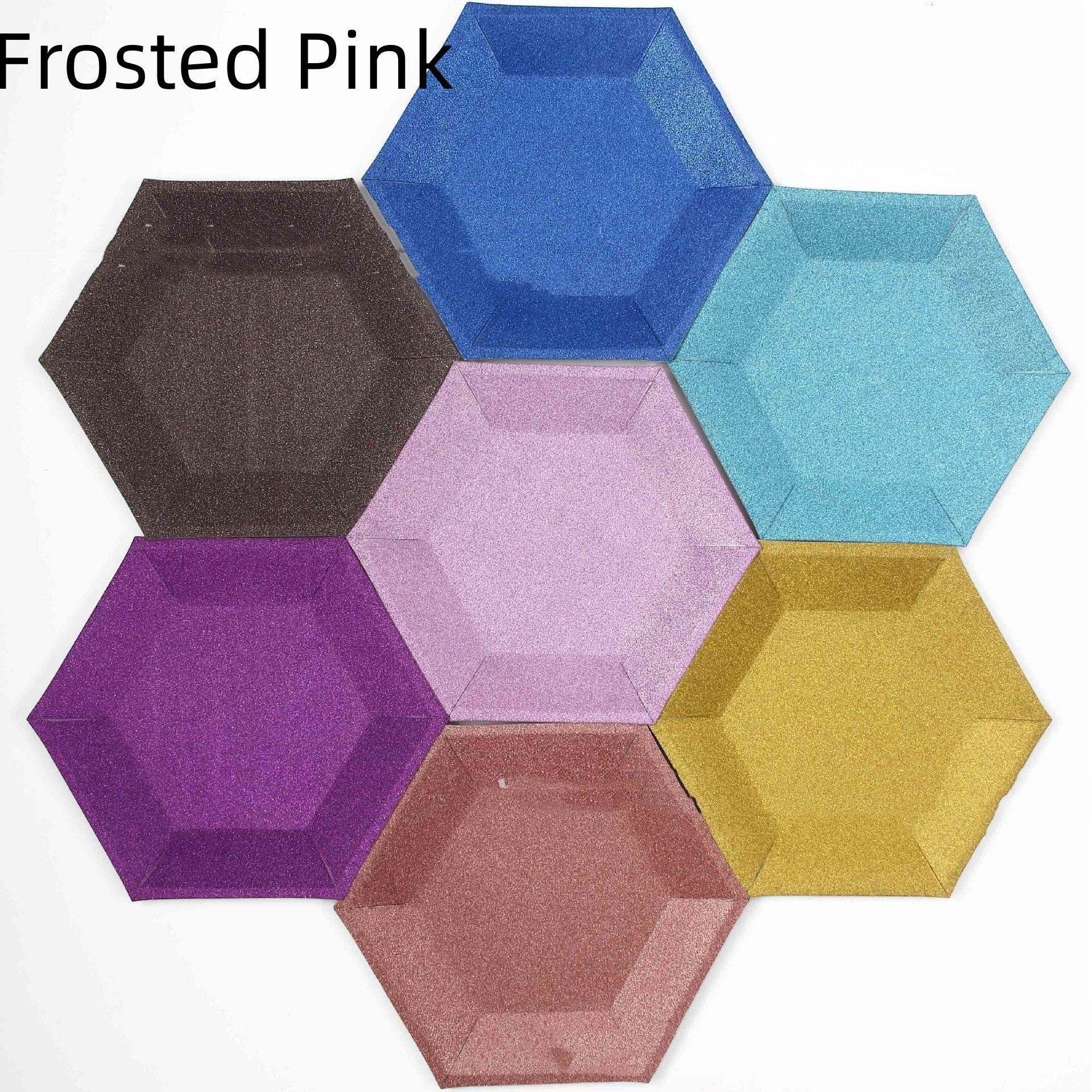 Beautiful Colors. Hexagonal Shape, Use as serving trays or plates. Makes a lovely cake base or base for entremet, mousse, or tiramisu. Color: frosted blue, Frosted Brown, scrub purple, frosted light brown, frosted color changing, frosted light blue, frosted pink 7 trays fir together perfectly to make a geometrical flower of sorts! Very pretty! Use to display desserts, as cake boards, and single servings.