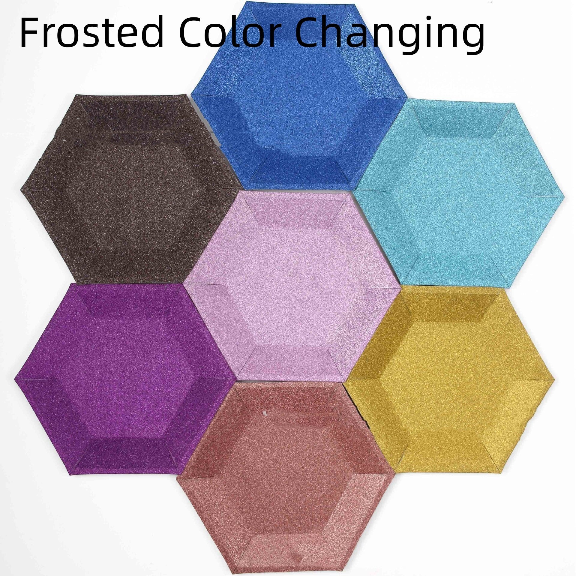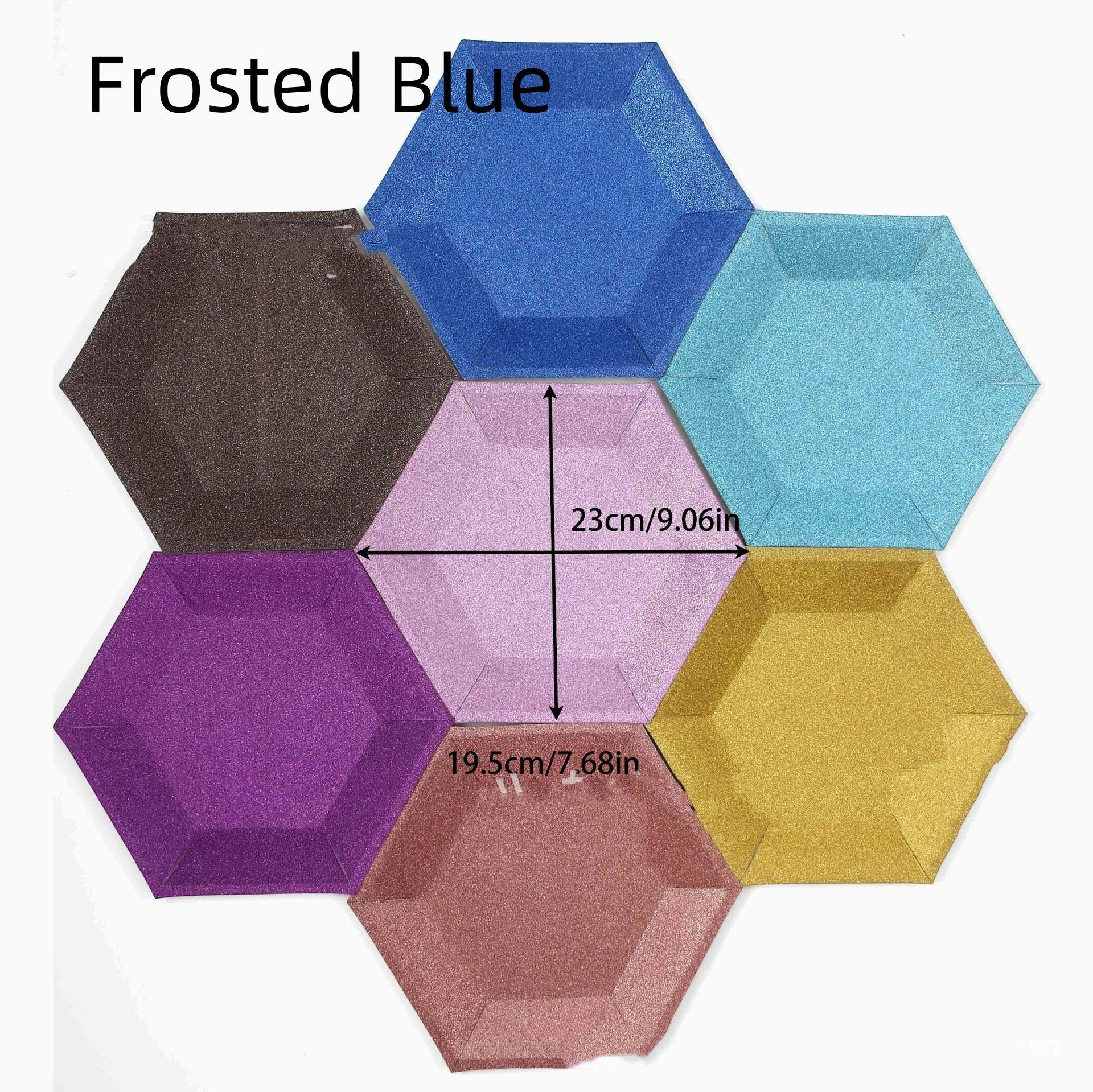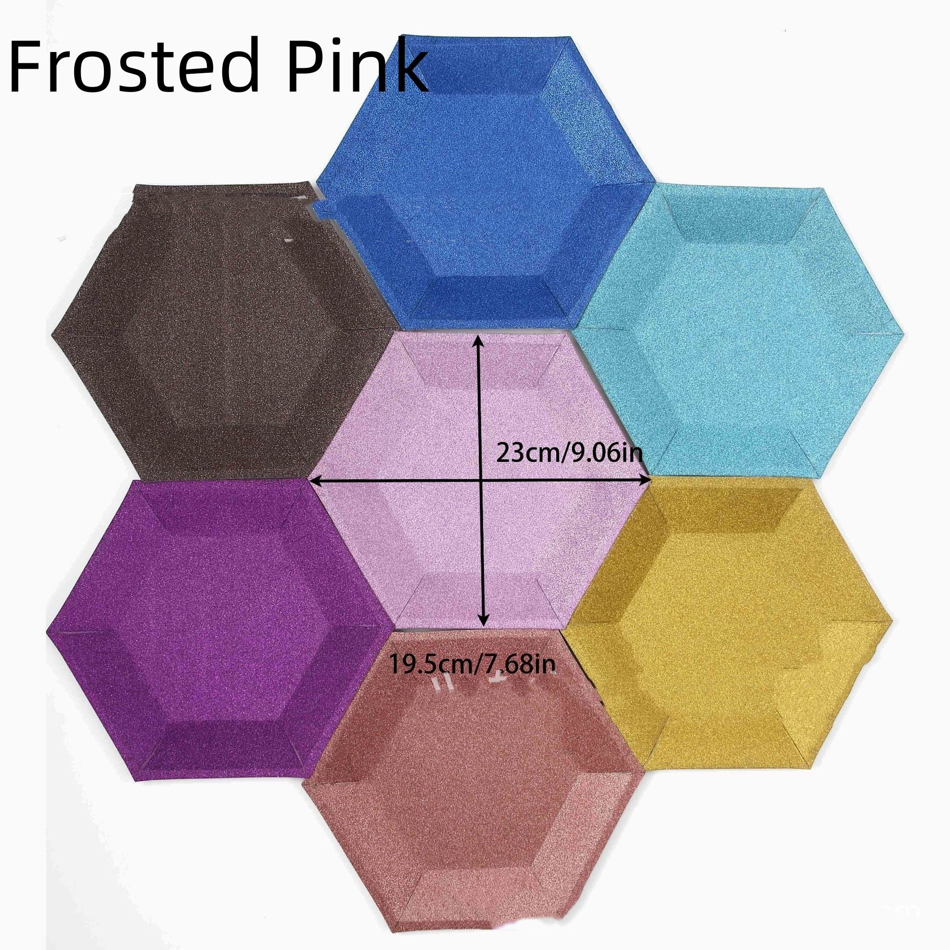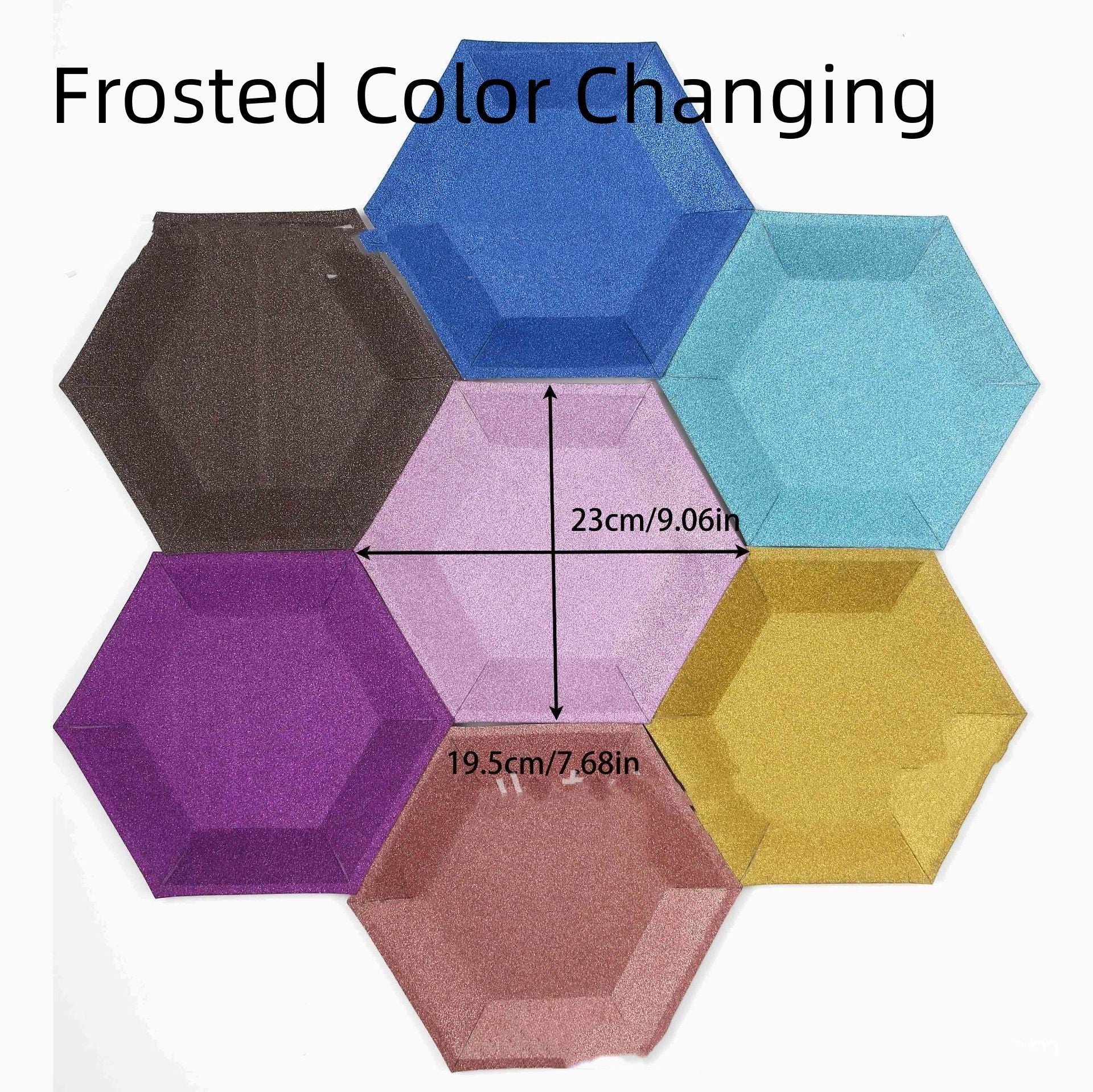 Beautiful Colors. Hexagonal Shape, Use as serving trays or plates. Makes a lovely cake base or base for entremet, mousse, or tiramisu. Color: frosted blue, Frosted Brown, scrub purple, frosted light brown, frosted color changing, frosted light blue, frosted pink 7 trays fir together perfectly to make a geometrical flower of sorts! Very pretty! Use to display desserts, as cake boards, and single servings.