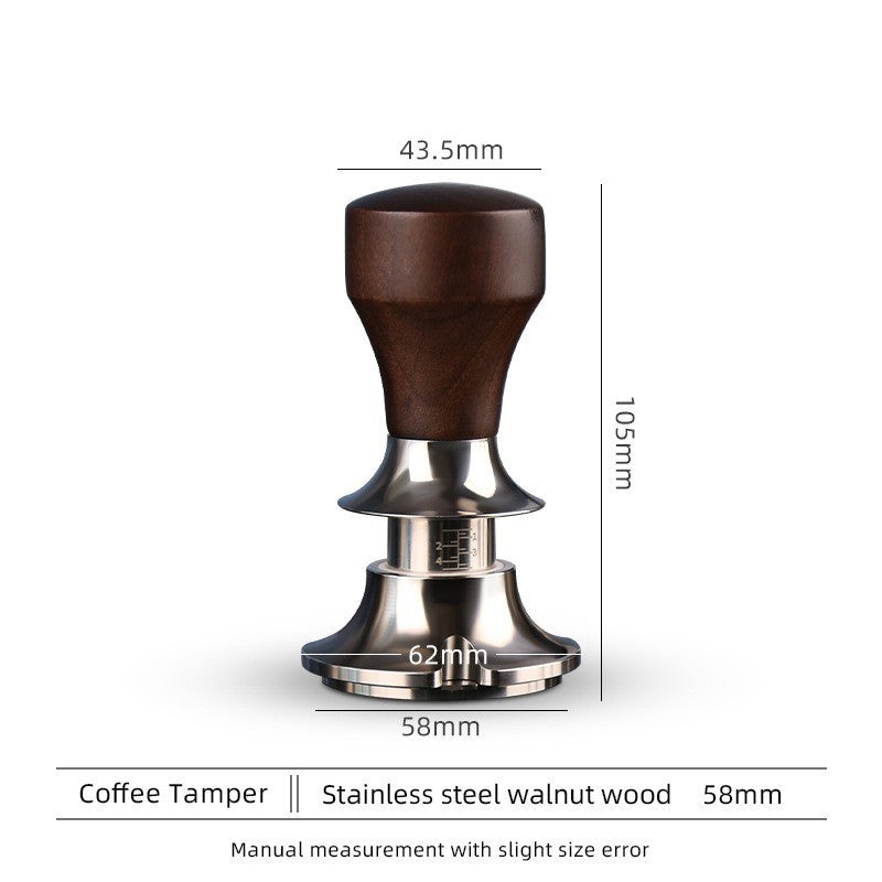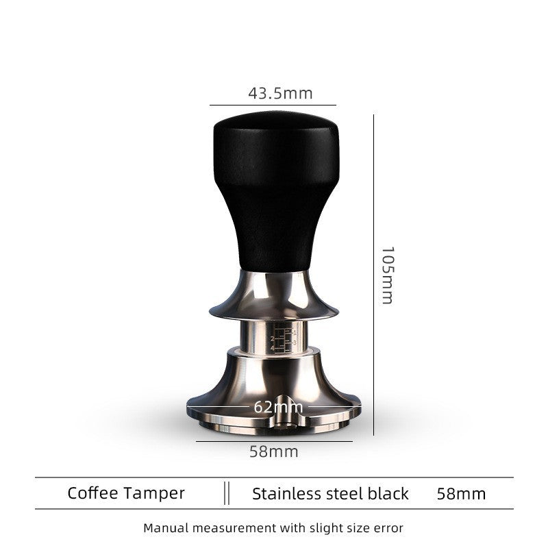 Crafted with stainless steel, this Constant Pressure Coffee Tamper maintains consistent pressure for high-quality espresso shots. Its 58mm size fits most coffee machines, while the black and brown design adds a touch of elegance. Say goodbye to uneven tamping and hello to perfect espresso every time.