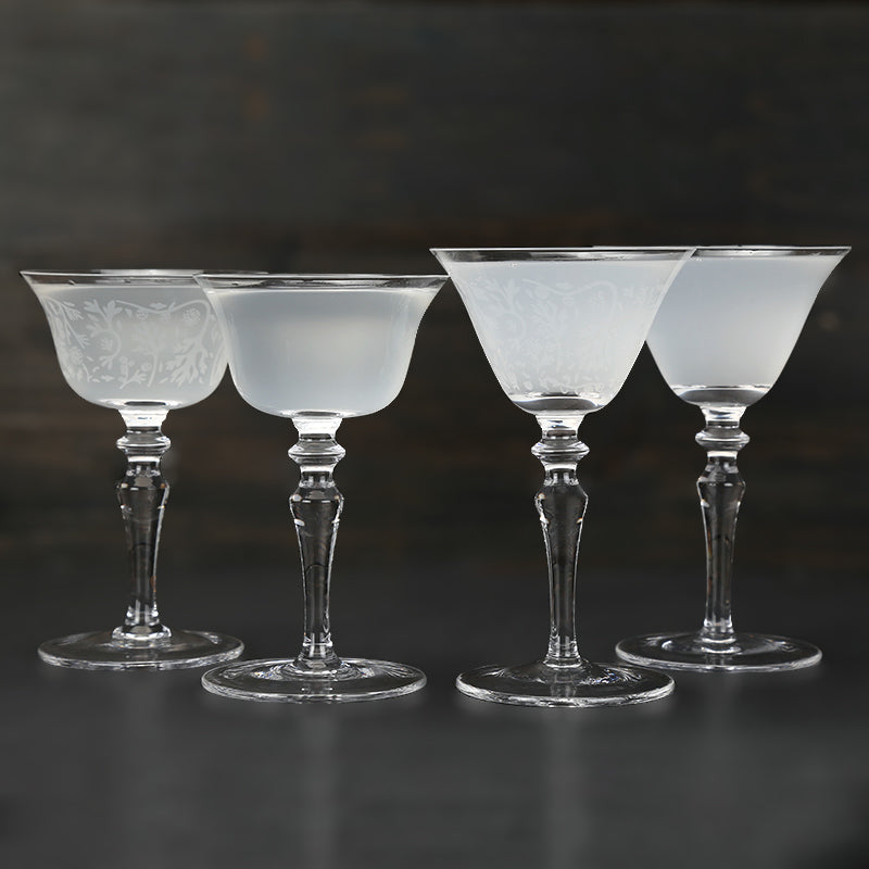 Elevate your drinking experience with our Etched Cocktail glasses. With stunning details and a variety of styles to choose from, these glasses add a touch of sophistication to any drink. Perfect for impressing guests or treating yourself, each sip will feel extra special.