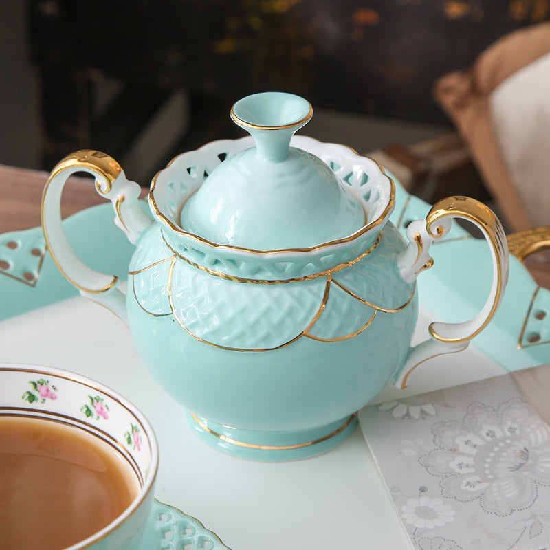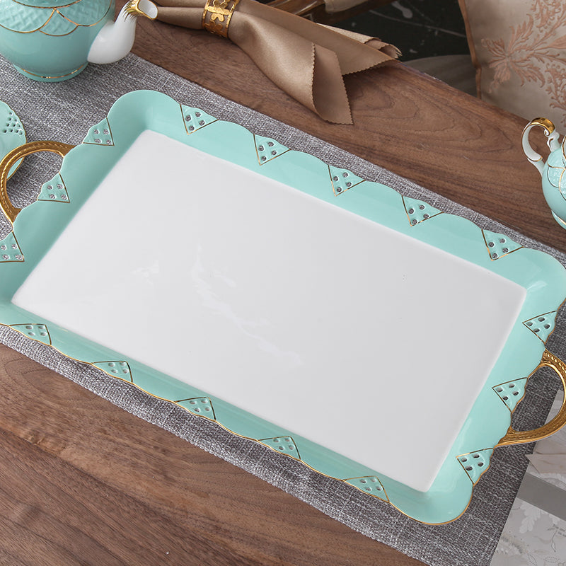 K: powder-sugar pot + blue-2 layer dessert plate + gift box