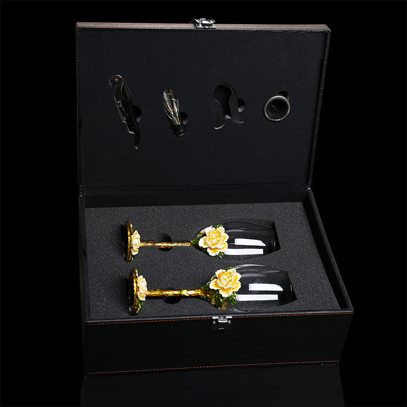 This elegant crystal clear wine glass with white roses on a gold stem and base are the epitome of romantic glassware. Perfect for weddings and anniversaries. Sold in sets of varying number of glasses. Style 4 includes an elegant, silk lined gift box. Style 5 includes a foam lined carrying case.