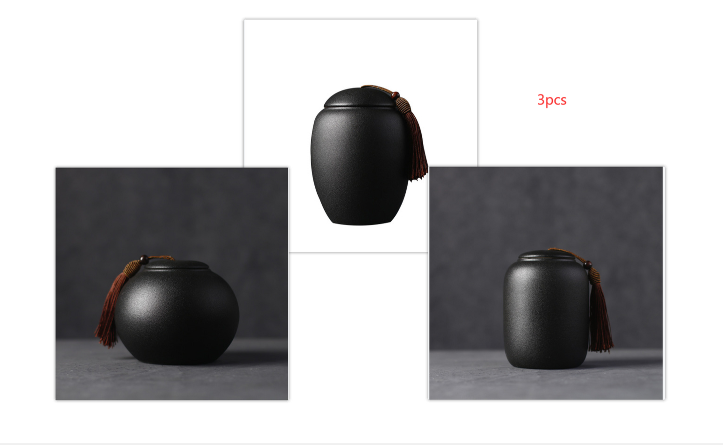 Japanese Glazed Black Ceramic Tea Jars