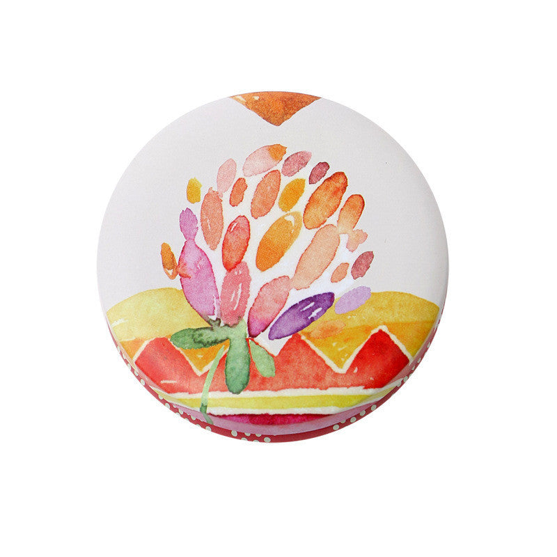 Adorable macaron tin holds 1 macaron. So many different pretty painted designs. Wrap it in bakery paper to cushion it and this is a great way to carry or ship a little treat to tell someone they are special. The recipient will be able to use the tin for medicines, breath mints, or candy.