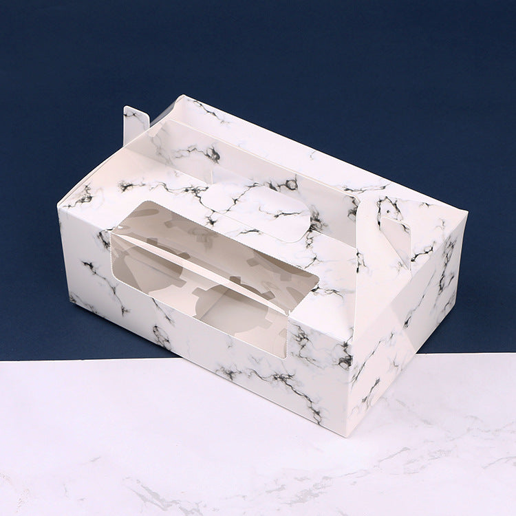 Attractive marble design dessert box/cupcake box with cupcake holder insert ..or take it out! Works for a variety of desserts: : Cake, Cupcakes, Brownies, Cookies, Bars, Fudge, Flan, Cheesecake, Biscotti.