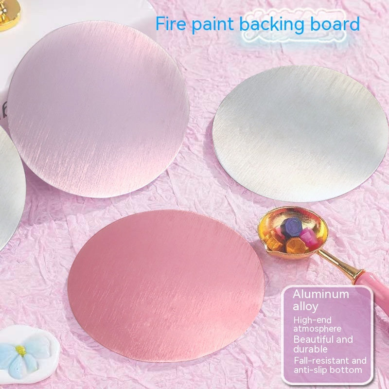 This metal dessert base plate serves as a sturdy and uniquely attractive base for small desserts and single servings. Use it for demolding and storing. I like to use these while making desserts as they make it easier to put frost or fill layers and chill them in the fridge. I like to use them at home to store and serve small entremets and dessert servings because they are studier than cardboard bases, easier to get the desserts onto and off than plates and can be washed and reused infinitely unlike foil covered cardboard bases. The felt backing on the bottom keeps them from slipping while you're decorating. I also like to use them as coasters.