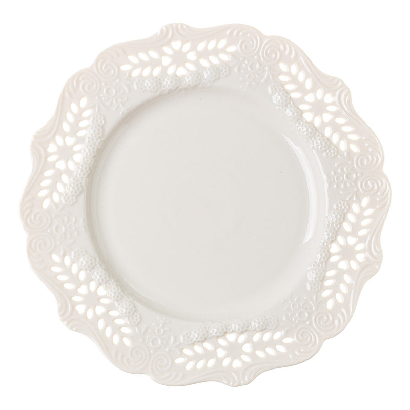 Porcelain Ceramic Cake Stand w/ Filigree Edge