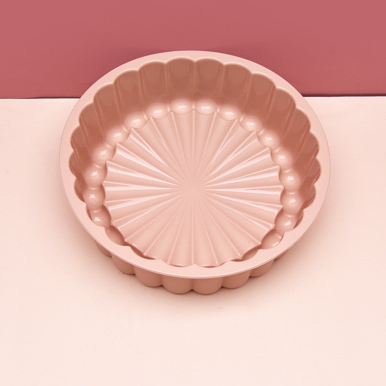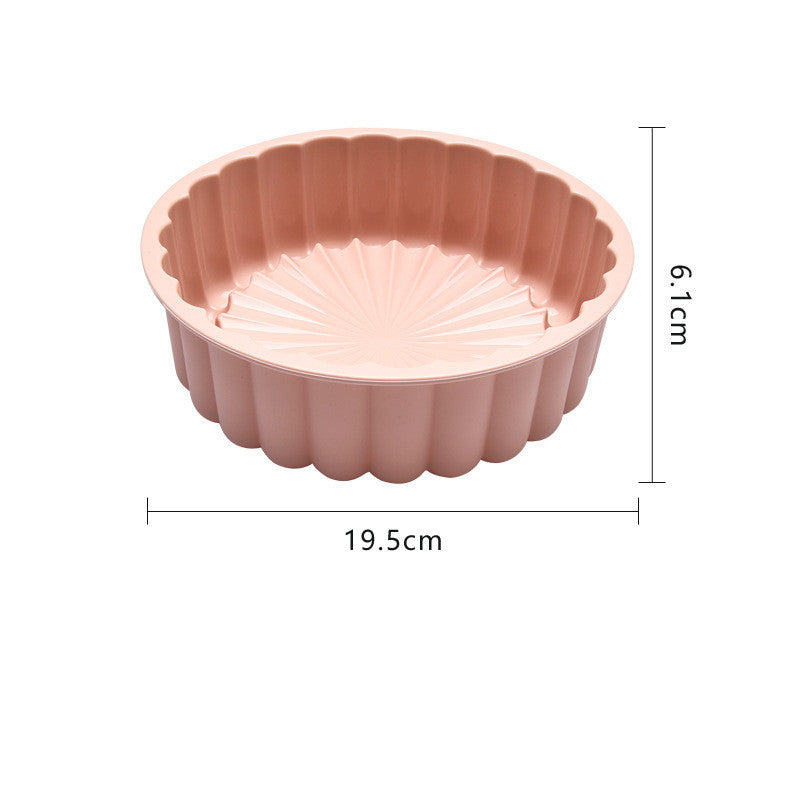 Made of silicone, the cake is easy to unmold. Silicone is durable, light weight and takes up little space. This cake mold is 19.5cm (7.67") X 6.1cm(2.5") Makes one low cake or a cake layer.