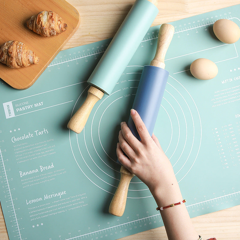 Rolling Pin & Mat: Thickened Non-slip Panel Rolling Pin & Large Non-Stick Mat Large