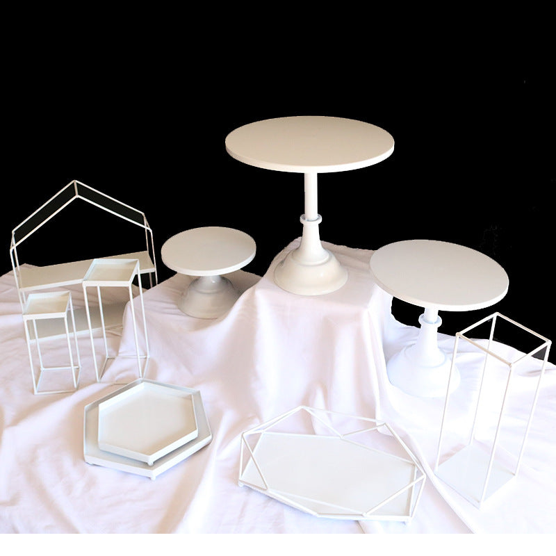 Elevate your dessert display with our Simple White Cake Stands. Made of durable iron, these stands are perfect for showcasing your cakes, pies, and other delicious treats. The medium size can hold 8-inch cakes, while the small size can hold 6-inch cakes. With a sleek design, these stands allow your desserts to shine.