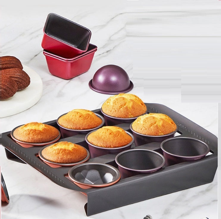 Streamline your baking with our Swappable Baking Cup Pan and Molds. Our European style pan allows for easy creation of various shapes and designs, all with just one pan. The removable molds make clean-up a breeze and save valuable space in your kitchen. Get creative with your baking today!