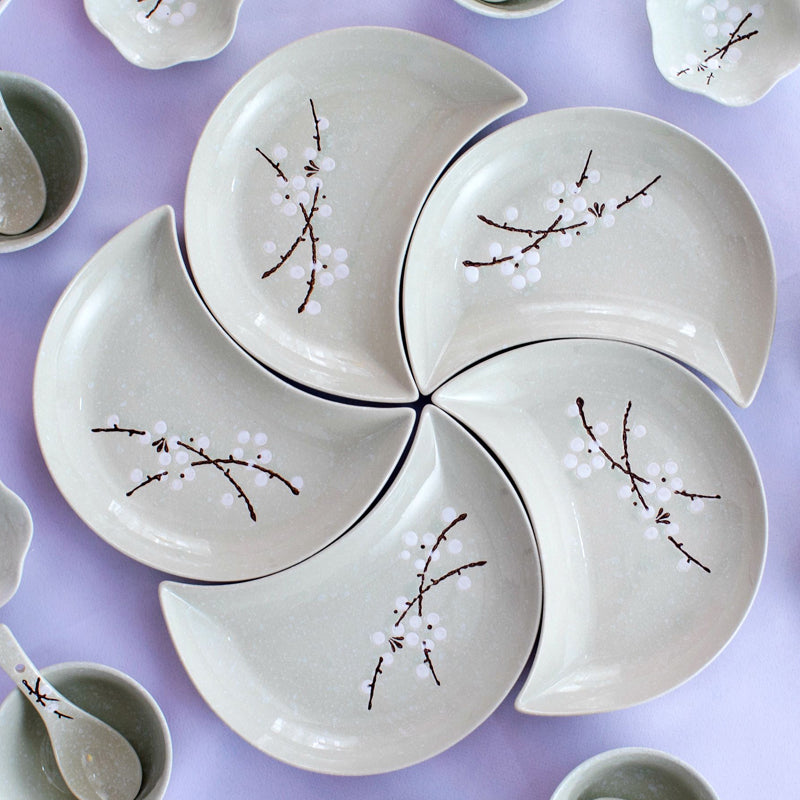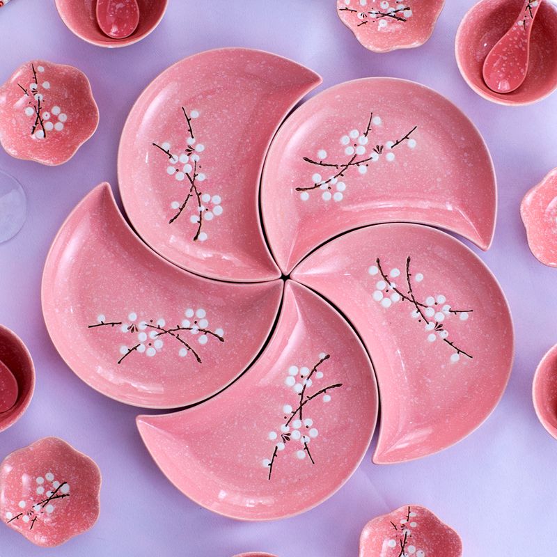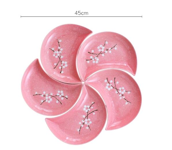 Serve your entremets, macarons, and other sweet treats in style with our 5PC Swirl Flower Petal Tray. Made of glazed porcelain ceramic with cherry blossom adds a touch of elegance, making it perfect for afternoon tea, birthdays, and special occasions, or everyday use.