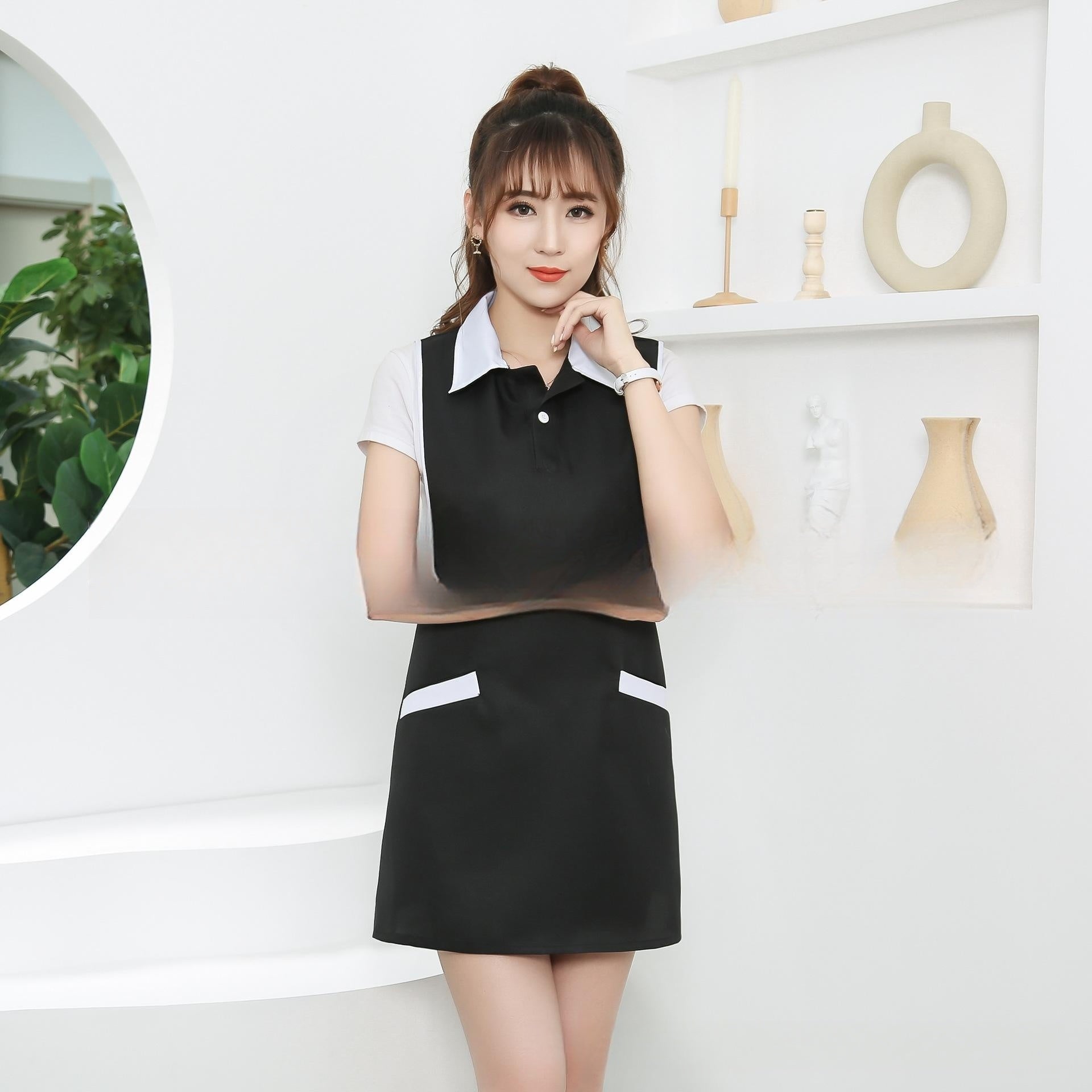 Tailored Look Apron with Collar and Tailored Pockets
