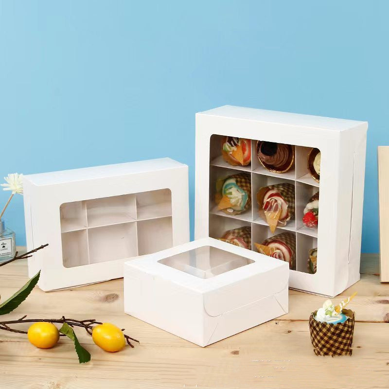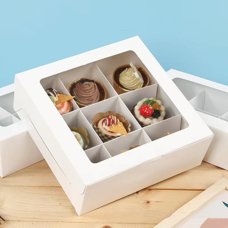 White Dessert Box with Window: and Grid Insert Available 1PC or 20PC